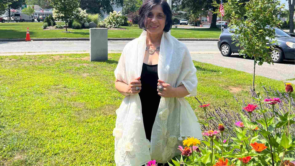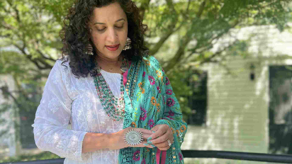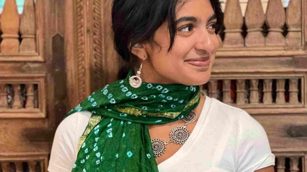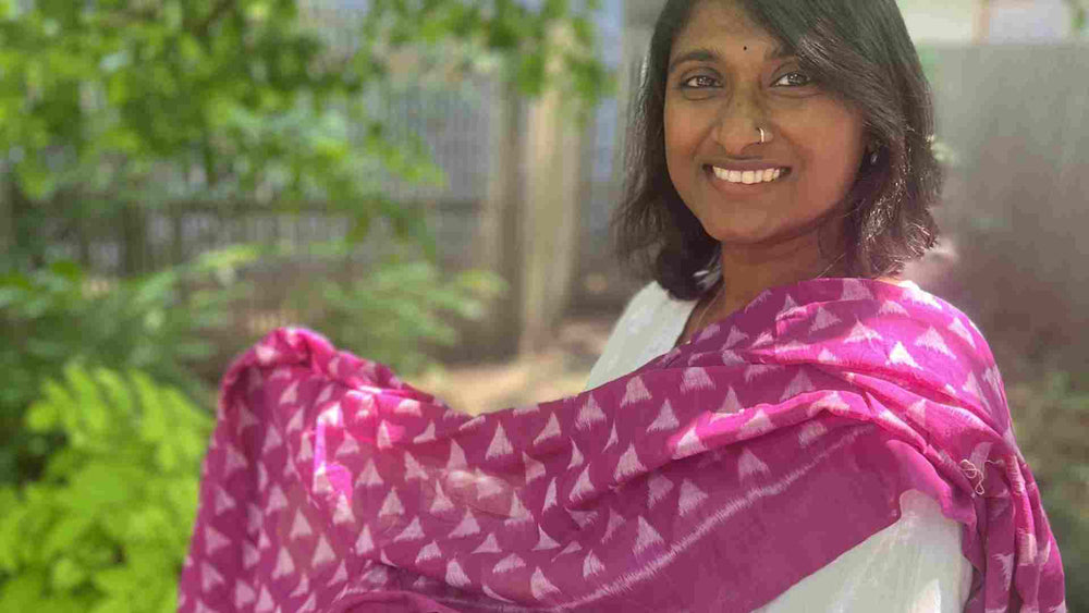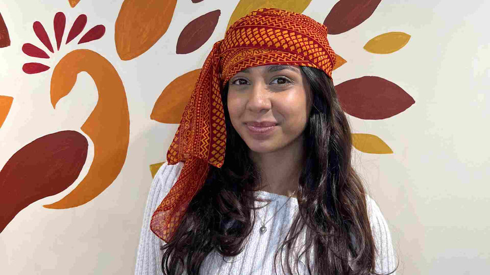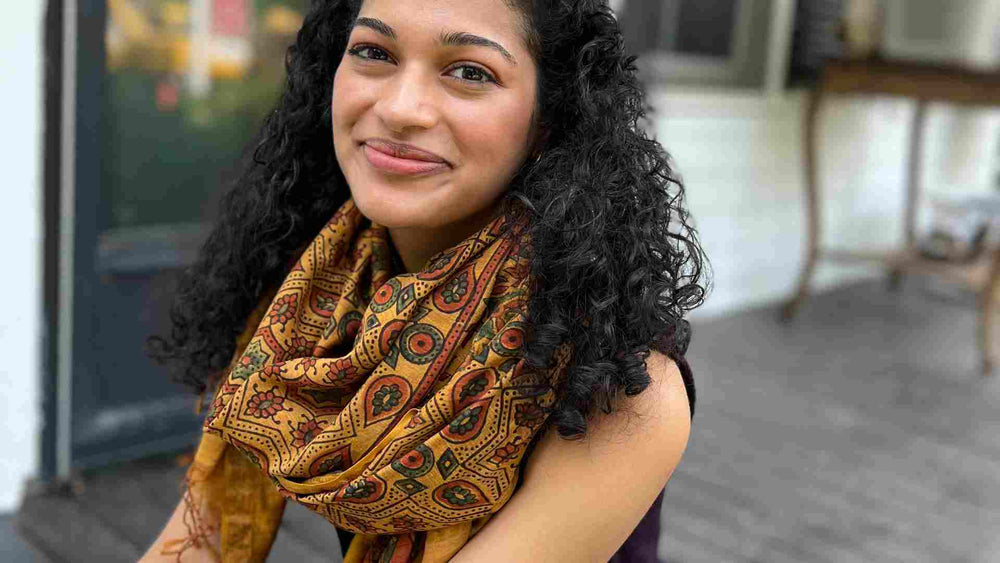 "My scarf arrived today & it is more beautiful than the pictures! I chatted back & forth with Madavi & I wasn’t disappointed with speed of shipping, scarf, & customer service!"